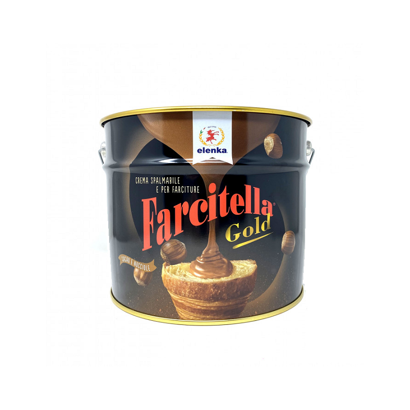 Farcitella Gold è una crema di nocciole (14%) e cacao studiata per farcire, decorare torte, cornetti e quant’altro in pasticceria. Dose di impiego: q.b.