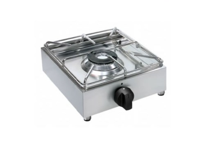 Fornello industriale con struttura interamente in Acciaio Inox AISI 304. Piano cottura ermetico (unico piano stampato privo di bacinelle estraibili). Bruciatore ultrarapido con potenza da 6KW e rapido da 3,5KW. Valvola di sicurezza. Griglia in Acciaio Inox. Di serie ugelli GPL, in dotazione anche qu...
