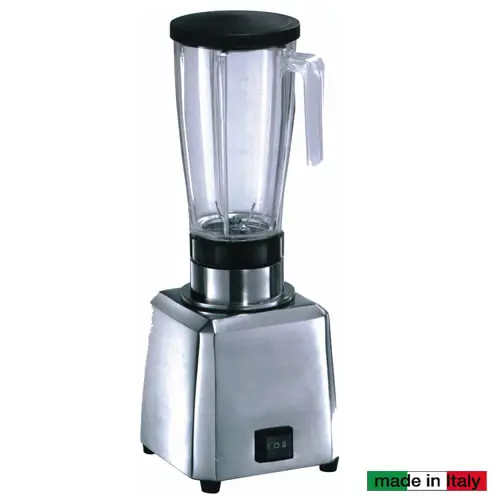 Frullatore con bicchiere in ABS alimentare capacità 2 lt. Tappo di gomma con foro per aggiunta prodotto. Coltelli in Acciaio temperato. Base in ABS. Motore a tenuta stagna ad elevato rendimento. Variatore di velocità. Pulsante marcia/arresto. Alimentazione 230V.