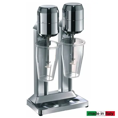 Frullino ideale per la preparazione di cocktails, frappè o per montare la panna. Ampia base in alluminio lucido per garantire un’ottima stabilità. Corpo in allu- minio, calotta motore cromata, bicchiere in policarbonato capacità 500 ml. Alimentazione 230V. Una velocità 1500 giri/minuto.