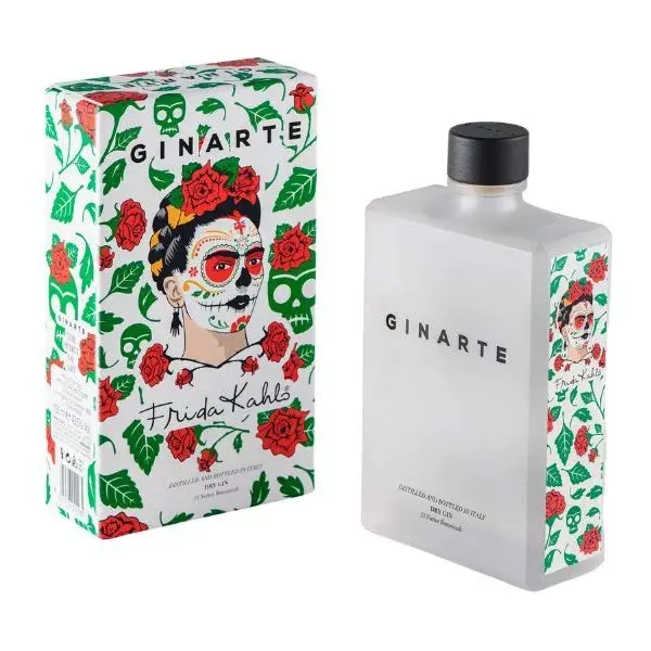 Bottiglia Ginarte The Life of an Icon. La seconda special edition Ginarte, esplicito tributo alla vita affascinante e intensa di Frida Kahlo. LE BOTANICHE dell’arte( 13 Native Botanicals): bacche di ginepro, nepitella, cartamo, reseda odorata, robbia, guado di Montefeltro, angelica, lavanda, ibisco,...