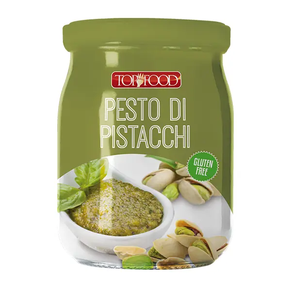 Gustoso pesto di pistacchi, con ingredienti di prima qualità e pronto all'uso.