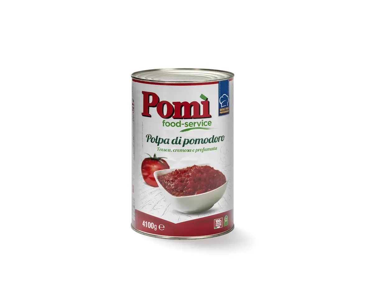 La nostra polpa di pomodoro ha un solo ingrediente. Nella confezione per food service troverete esclusivamente pomodori freschi maturati al sole e sminuzzati in pezzetti per portare in tavola freschezza e sapore inimitabili. La polpa di pomodoro Pomì è eccellente per gustare la pizza o la pasta ...