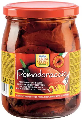 Pomodoraccio Terra Maris è composto solo dai pomodori italiani del Sud, raccolti e tagliati a mano, sono morbidi e succosi, ricettati secondo una tipica ricetta Terra Maris. Un prodotto che si presta agli utilizzi più fantasiosi.