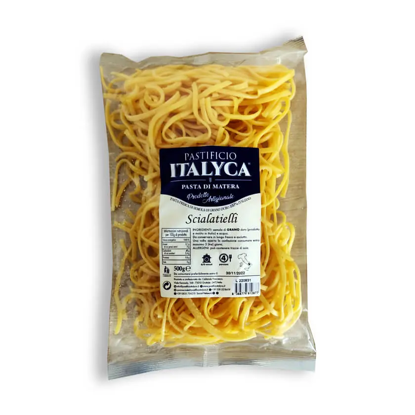 Gli Scialatielli Bio Italyca freschi, grazie alla loro forma conica offre la possibilità di creare tanti piatti gustosi, ideali in particolare con i condimenti a base di pesce. "Tempi di cottura: 6 minuti."